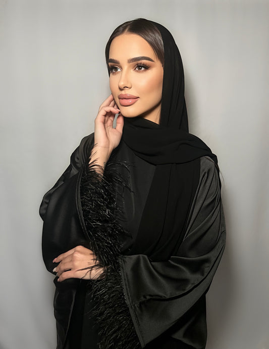 Sold outBlack Feather Open Abaya
